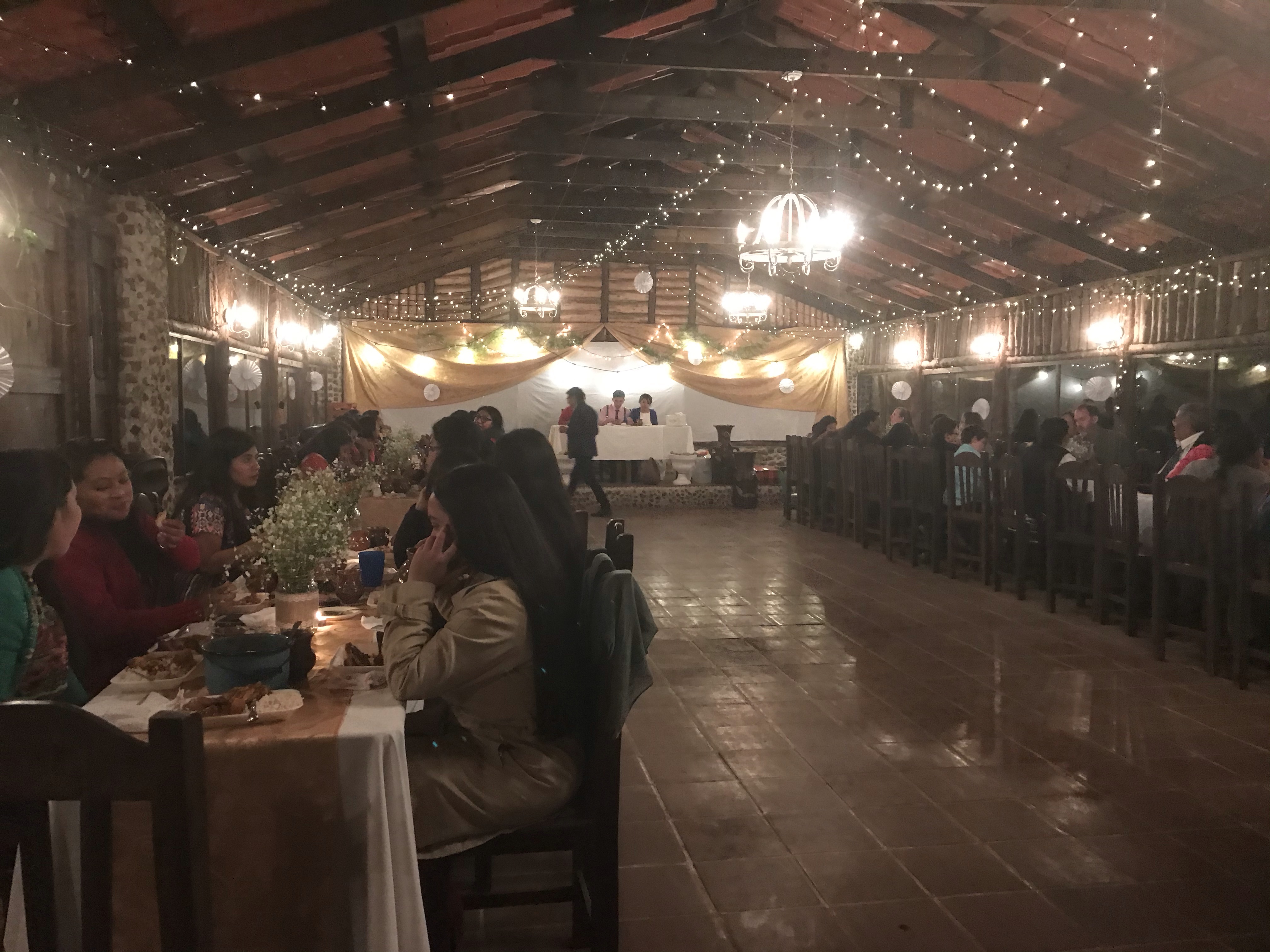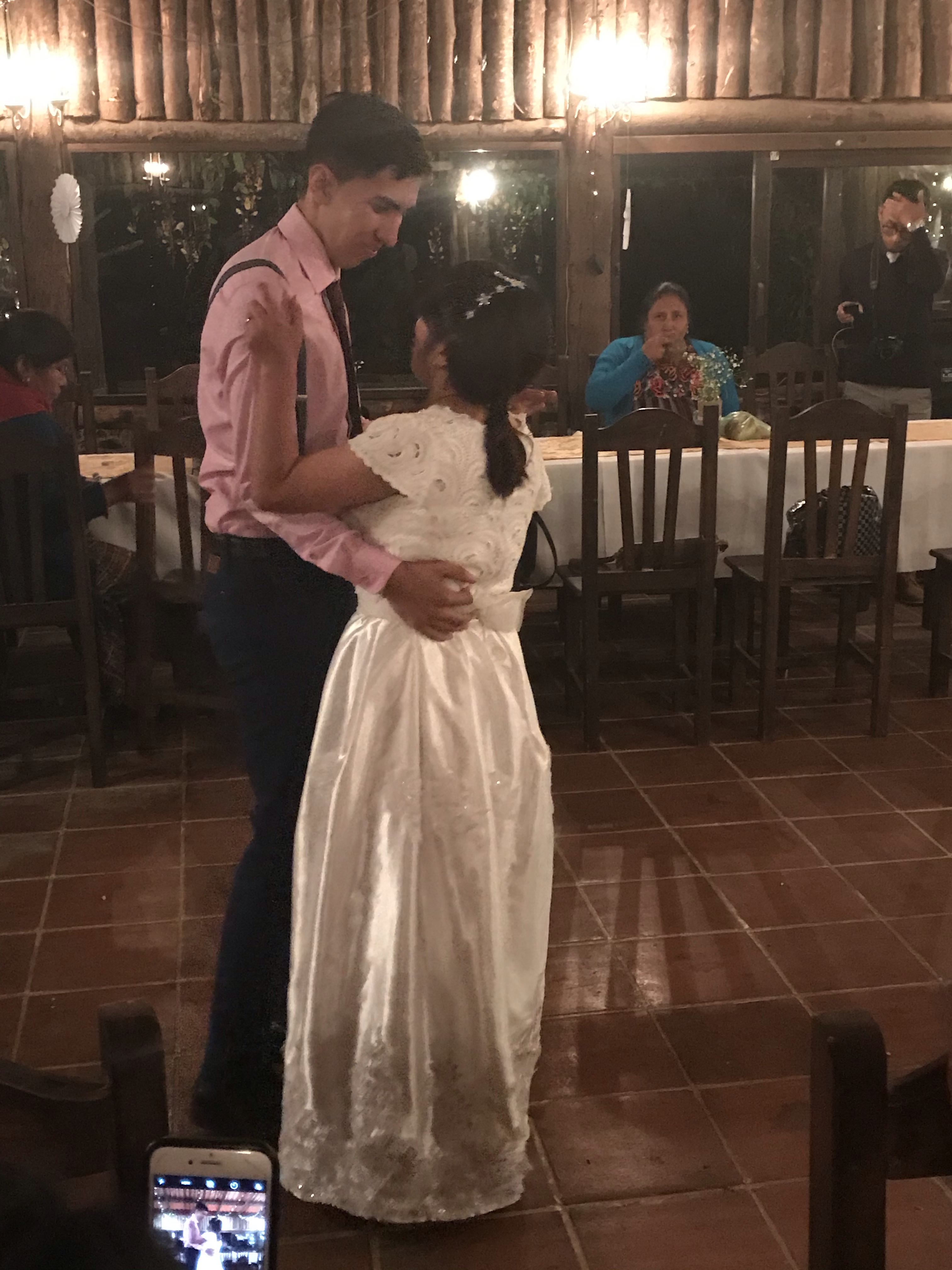 Gladly, a 3:30 start time is just a suggestion in Guatemala. They waited for us to start the ceremony. I almost got a little teary-eyed and felt a big sense of relief, when the groom called us saying “Te esperamos!” (We’ll wait for you!) The parents of the family I rode with walked the groom down the aisle, and I got to walk down with one of the bride’s brothers. The bride wore a white dress, put together by herself and one of the house moms. (I also had my dress hemmed by that house mom!) It was a pretty short service with a short message, vows, placing of the rings, and the final kiss before walking back up the aisle.