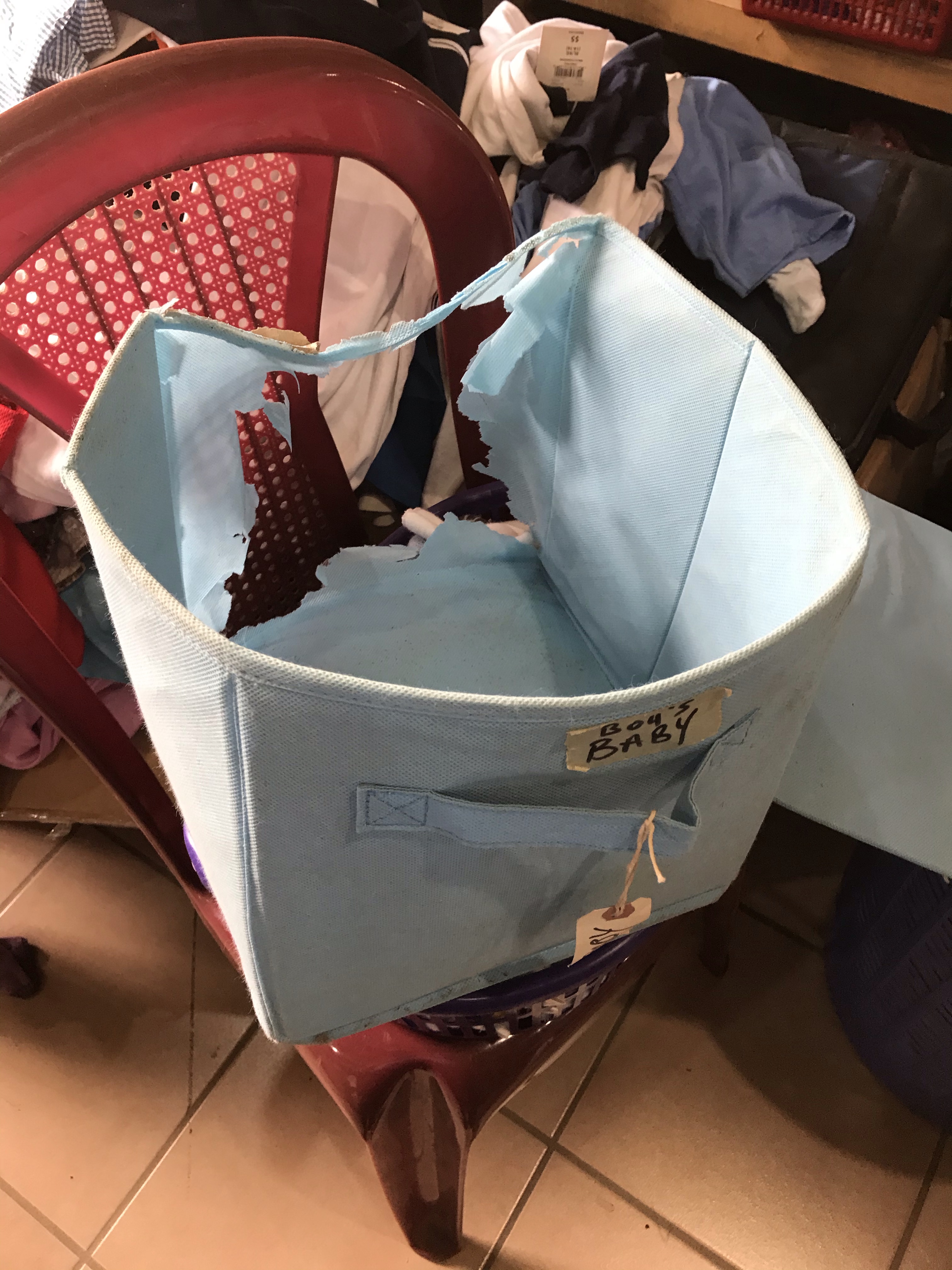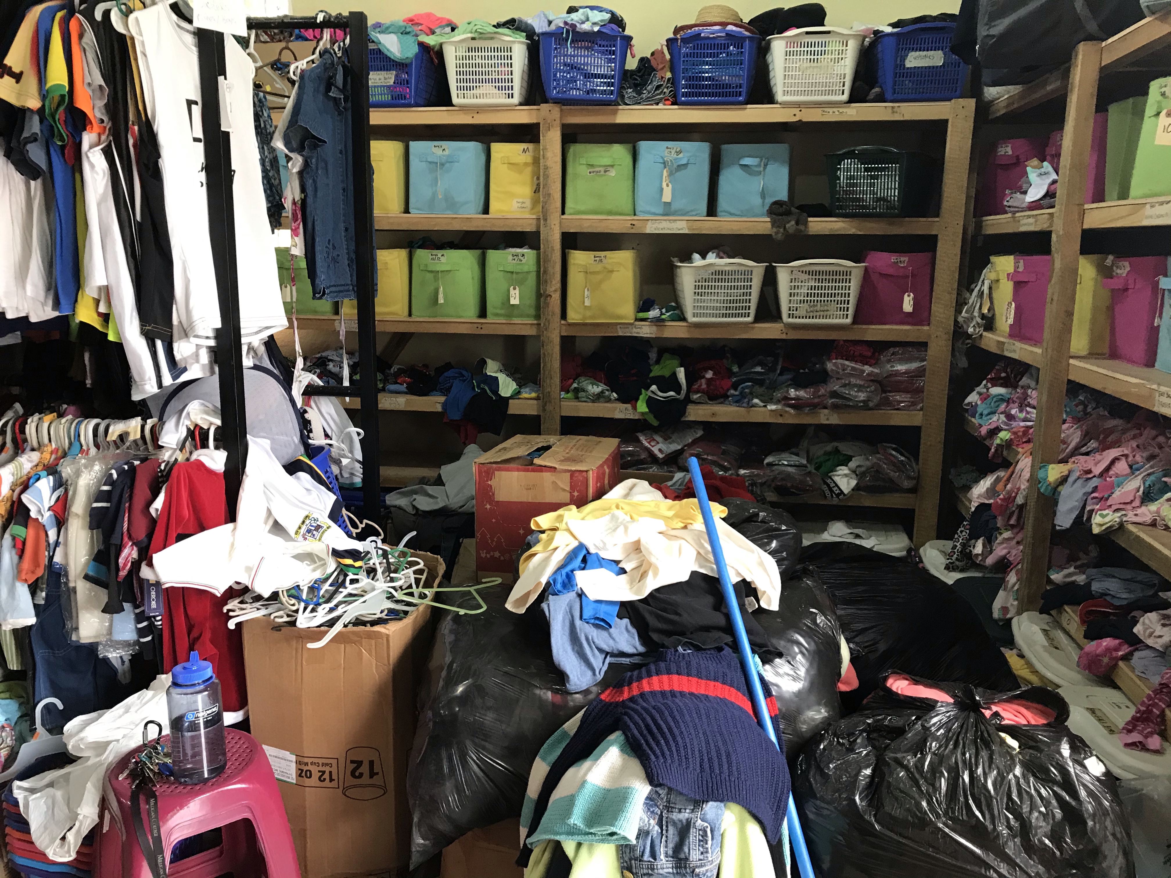 Over the past few months I’ve been organizing, rearranging, sorting, and cleaning out the bodega on campus. That’s the big closet where we hold all the extra clothing, shoes, blankets, linens, towels and extra needs that our 80 children may need at a moment’s notice. During the past several weeks, I’ve been going in a couple hours a day to sort through everything, and I don’t think I am halfway finished yet. It is definitely a few month’s worth of hard work, and it will be a continuous effort to keep it clean and organized.